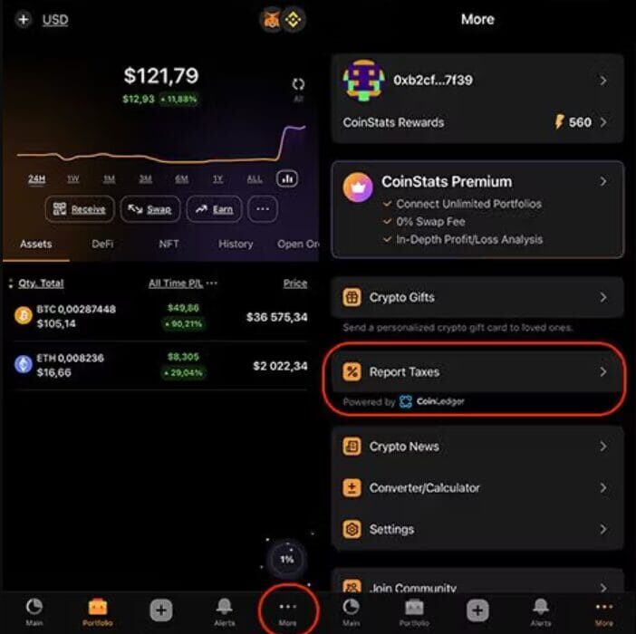 • You can exchange your cryptocurrency using the CoinStats Built-in Swap app.