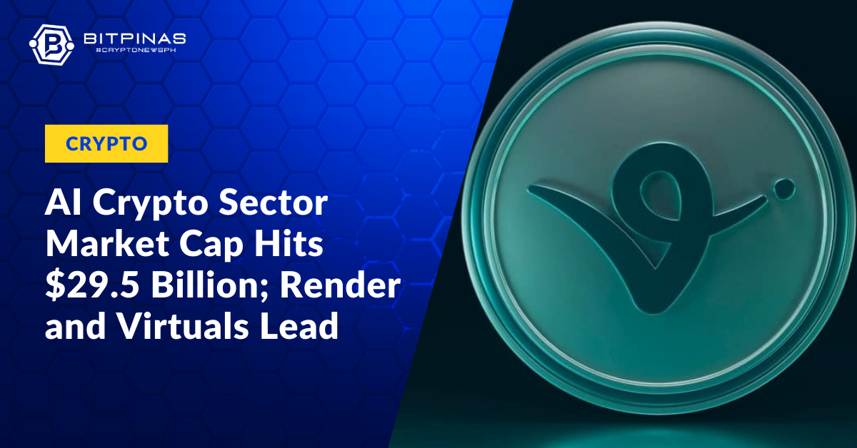 This article is published on BitPinas: AI Crypto Sector Market Cap Hits $29.5 Billion; Render and Virtuals Protocol Lead Weekly Gains