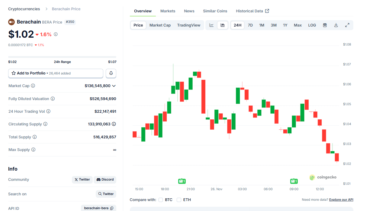 After flying to all-time highs in February 2025, BERA USDT has been dumping hard. To put it in numbers, BERA crypto is down -92% from all-time highs, and on November 22, it plunged to all-time lows.