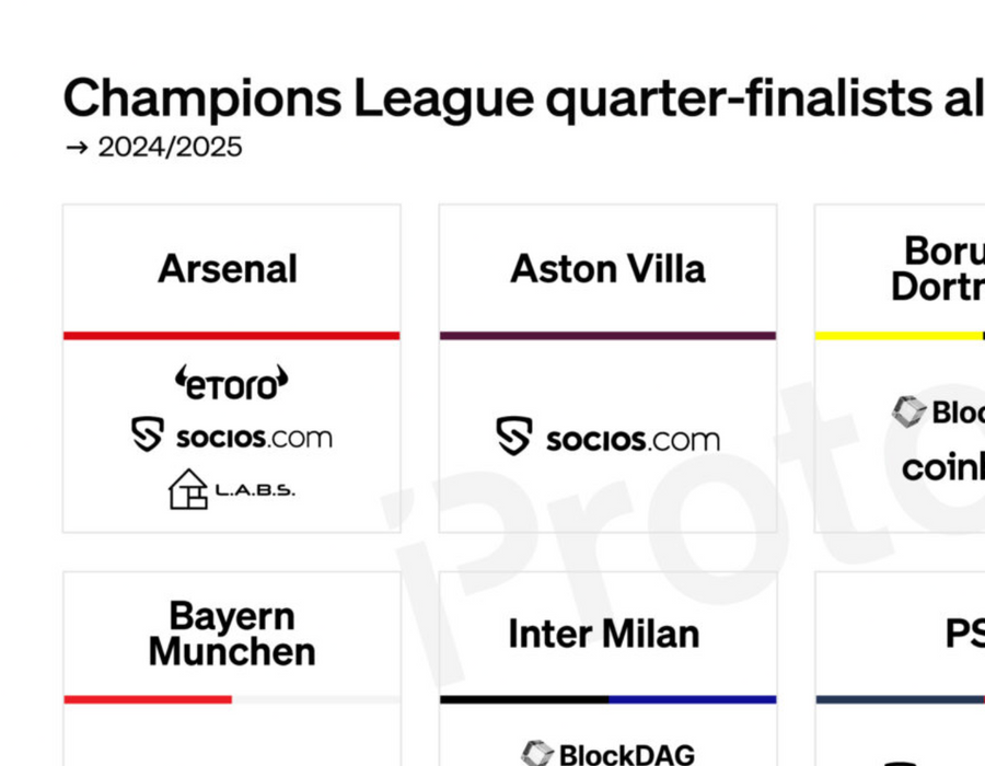 Arsenal, Aston Villa, PSG, and Inter have inked deals with Socios, while Coinbase and Bitpanda sponsor Dortmund and Bayern Munich.