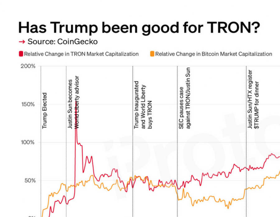 TRON founder Justin Sun has been quick to embrace Donald Trump, and TRON has far outperformed BTC since Trump’s election.