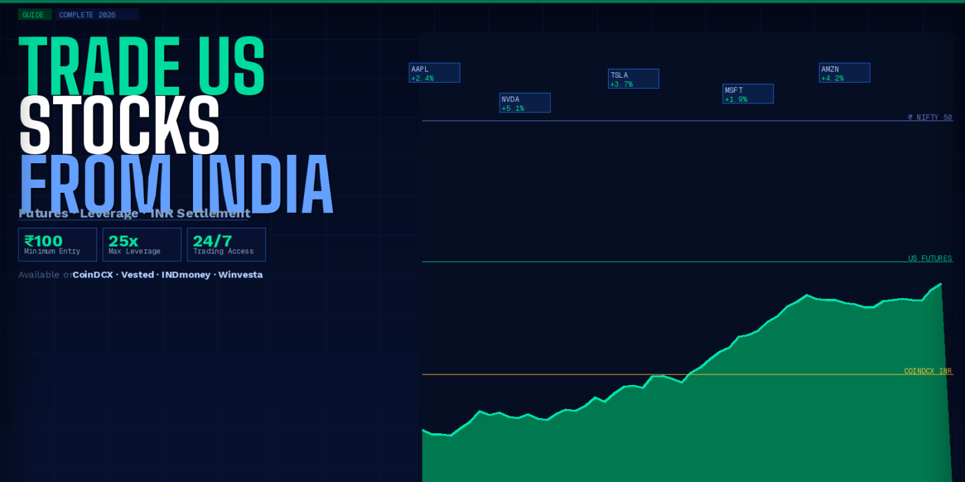 Indian residents can legally trade US stock futures through platforms like CoinDCX, starting with just ₹100, with up to 25x leverage, settled entirely in INR — no US brokerage account, no dollar conversion, and no LRS remittance required. Alternatively, platforms like Vested Finance, INDmoney, and Winvesta offer actual stock ownership via the LRS route, requiring dollar transfers and a US custodian. This guide covers both routes in full, with step-by-step setup, costs, taxes, and honest pros and cons.