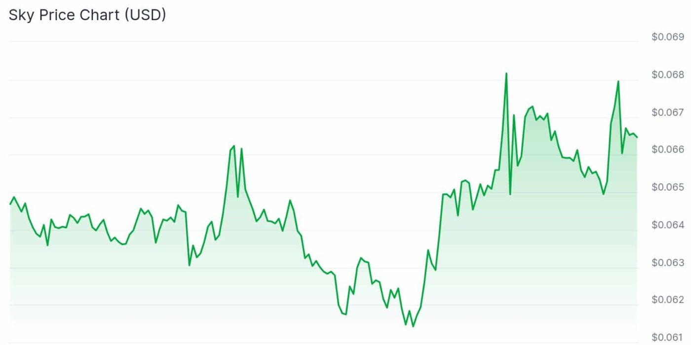 SKY, the governance token of Sky Protocol, traded between $0.066 and $0.067 across major exchanges, including Binance, Coinbase, and Kraken.