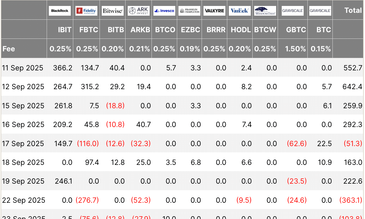 According to Farside investors’ data, US spot Bitcoin funds recorded a net +$518M inflow on Sept. 29, the strongest daily intake of the week, partly offsetting earlier outflows.